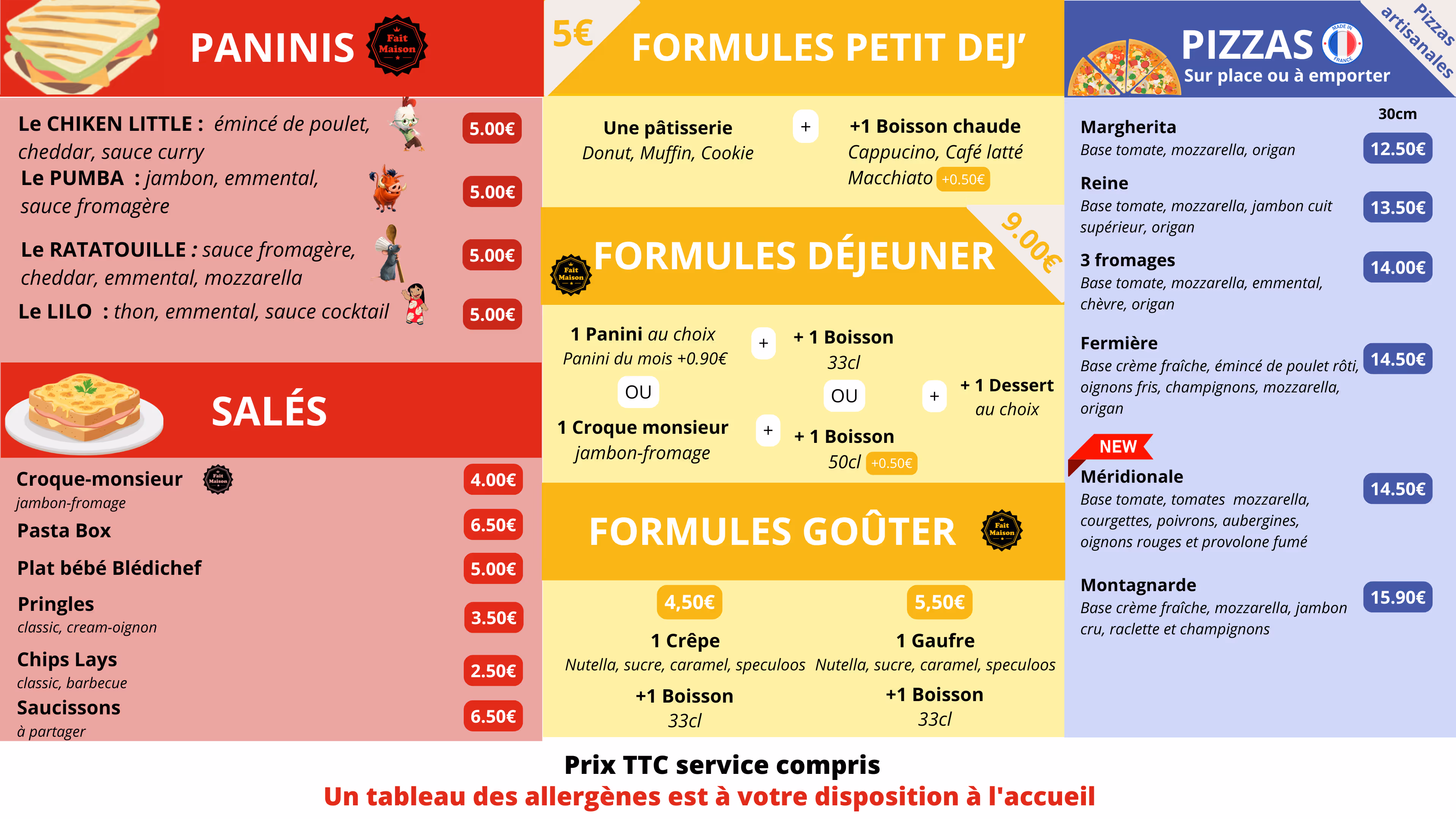 Vous souhaitez vous restaurer lors de votre visite dans notre parc ? Découvrez l'offre de boissons et plats proposés par notre snack.
